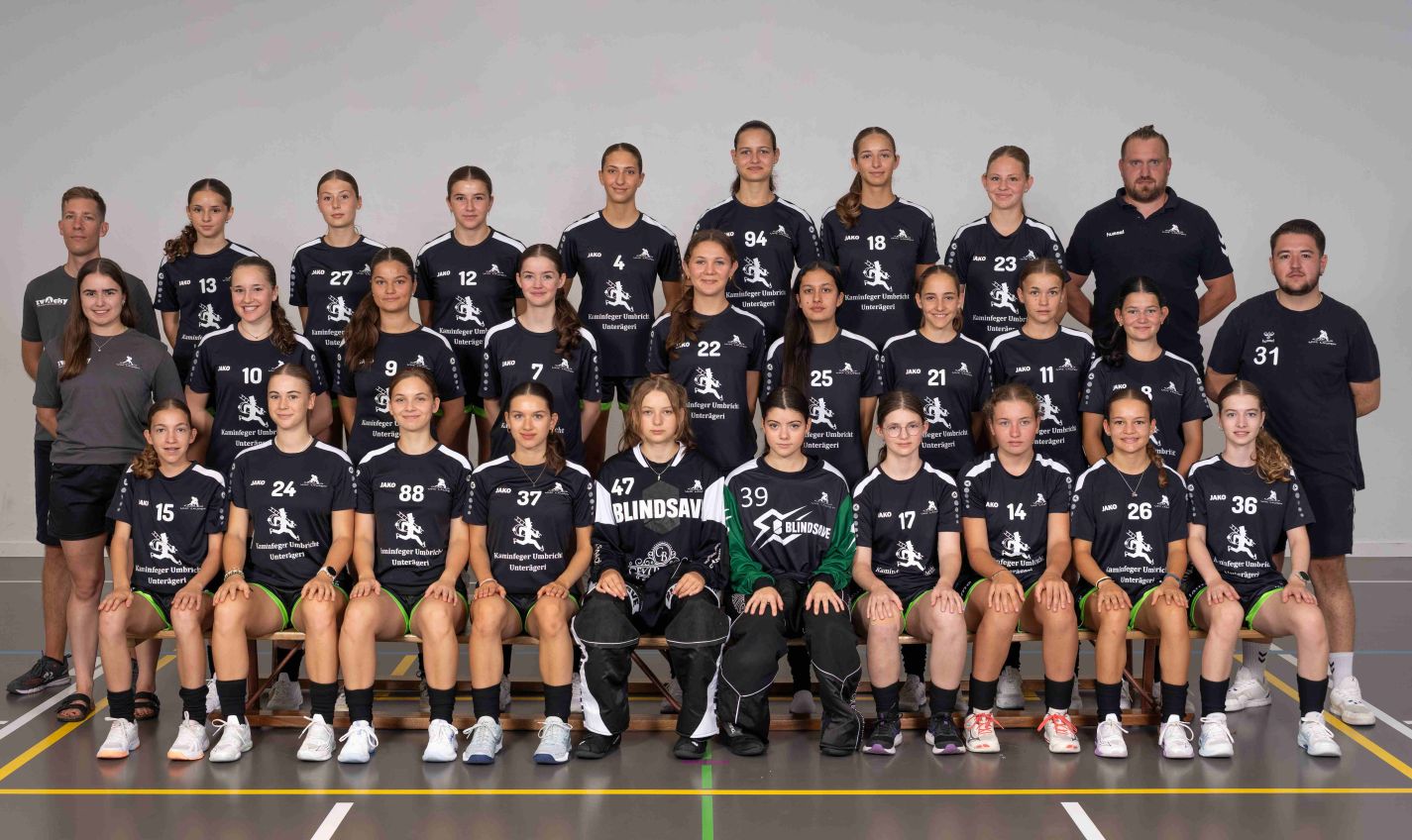 Mitte: Vanessa Basler (Trainerin), Sina Rüegg 10, Malin Aebersold 9, Julie Bornand 7, Hanna Schnyder 22, Lena Wenzinger 94, Elin Altorfer 18, Joy Enzler 23, Dominik Künzler (Trainer)
